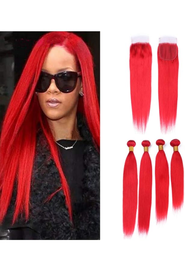 Red Bundles With Closure Colored Straight Bundles With Closure Pre Plucked Brazilian Human Hair Weave Bundles With Closure Remy Pre Colored Bundle Pack Aliexpress